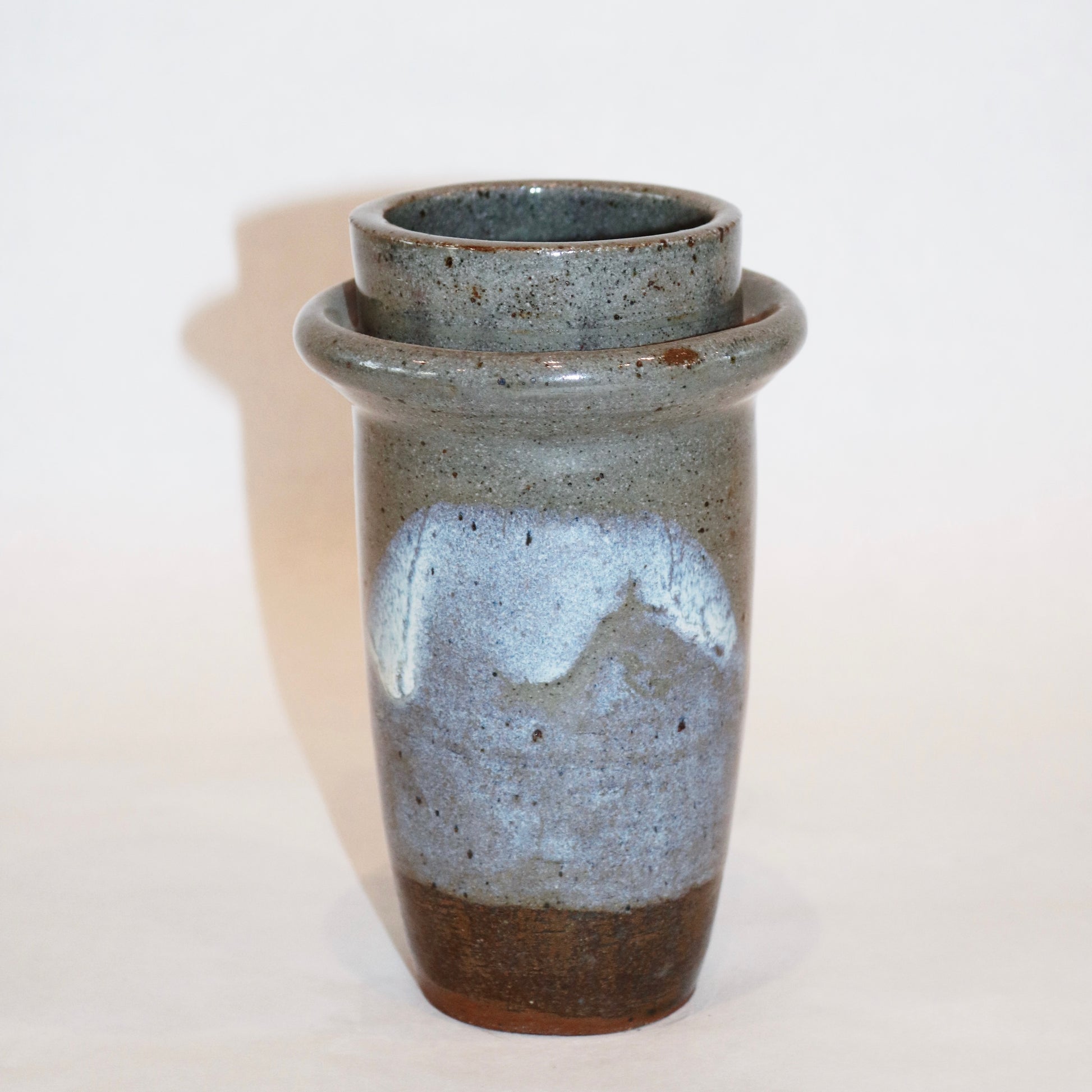 I love this vase because of its natural crawling glaze, which adds a "frosted" look to the outside. Another unique aspect of this vase is the form that the clay has taken at the top. This vase will become a striking centerpiece in your home, and I hope it brings you as much joy as it brought me while making it.